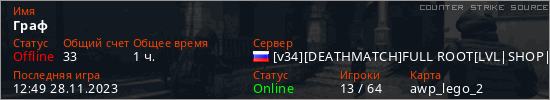 Последний раз был в сети 12:49 28.11.2023 Игрок с таким ником замечен на 7 серверах