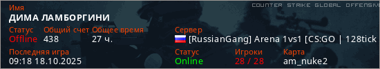 Играет на Counter Strike Global Offensive сервере. Страна: РоссияПервый раз замечен 09:10 14.03.2025