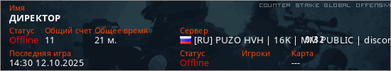 Играет на Counter Strike Global Offensive сервере. Страна: РоссияПервый раз замечен 11:29 06.05.2025