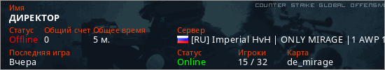 Играет на Counter Strike Global Offensive сервере. Страна: РоссияПервый раз замечен 21:59 05.12.2025