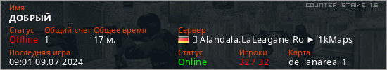 Играет на Counter Strike 1.6 сервере. Страна: ГерманияПервый раз замечен 20:20 07.07.2024