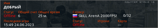 Играет на Counter Strike 1.6 сервере. Страна: РоссияПервый раз замечен 22:17 18.09.2022