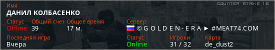 Играет на Counter Strike 1.6 сервере. Страна: РоссияПервый раз замечен 09:56 13.02.2026