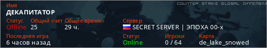 Играет на Counter Strike Global Offensive сервере. Страна: РоссияПервый раз замечен 16:29 28.08.2025