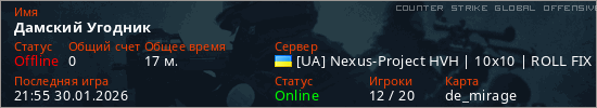 Играет на Counter Strike Global Offensive сервере. Страна: УкраинаПервый раз замечен 00:17 28.01.2026