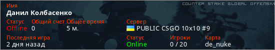Играет на Counter Strike Global Offensive сервере. Страна: УкраинаПервый раз замечен 21:10 05.03.2026