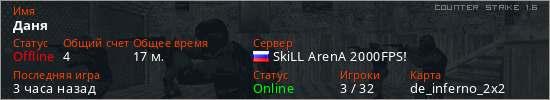 Последний раз был в сети Час назад Игрок с таким ником замечен на 33 серверах