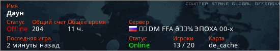 Играет на Counter Strike Global Offensive сервере. Страна: РоссияПервый раз замечен 01:03 25.02.2026