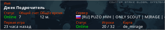 Последний раз был в сети Час назад Игрок с таким ником замечен на 22 серверах