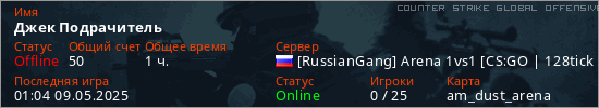 Играет на Counter Strike Global Offensive сервере. Страна: РоссияПервый раз замечен 23:19 23.02.2025