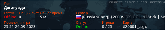 Играет на Counter Strike Global Offensive сервере. Страна: РоссияПервый раз замечен 23:39 26.09.2023