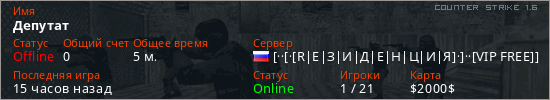 Последний раз был в сети 13 часов назад Игрок с таким ником замечен на 16 серверах