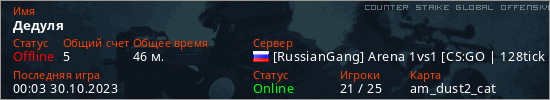 Играет на Counter Strike Global Offensive сервере. Страна: РоссияПервый раз замечен 15:04 06.09.2023