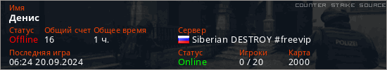 Играет на Counter Strike Source сервере. Страна: РоссияПервый раз замечен 13:49 06.02.2023