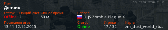 Последний раз был в сети 13:41 12.12.2025 Игрок с таким ником замечен на 30 серверах