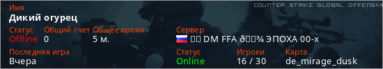 Играет на Counter Strike Global Offensive сервере. Страна: РоссияПервый раз замечен 21:23 05.03.2026