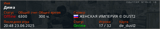 Играет на Counter Strike 1.6 сервере. Страна: РоссияПервый раз замечен 14:56 09.02.2022