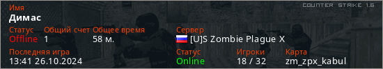 Последний раз был в сети 13:41 26.10.2024 Игрок с таким ником замечен на 27 серверах