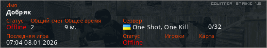Играет на Counter Strike 1.6 сервере. Страна: УкраинаПервый раз замечен 17:20 07.01.2026