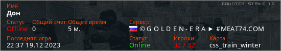 Играет на Counter Strike 1.6 сервере. Страна: РоссияПервый раз замечен 22:31 19.12.2023