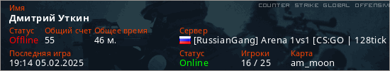 Играет на Counter Strike Global Offensive сервере. Страна: РоссияПервый раз замечен 21:00 12.09.2023