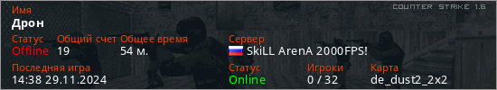 Играет на Counter Strike 1.6 сервере. Страна: РоссияПервый раз замечен 09:39 07.06.2023