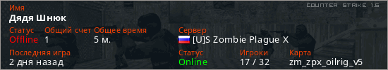 Играет на Counter Strike 1.6 сервере. Страна: РоссияПервый раз замечен 10:32 21.01.2026