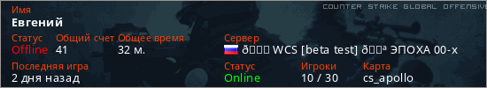 Играет на Counter Strike Global Offensive сервере. Страна: РоссияПервый раз замечен 13:43 13.02.2026