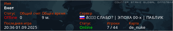 Последний раз был в сети 20:36 01.09.2025 Игрок с таким ником замечен на 24 серверах