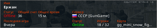 Последний раз был в сети Вчера Игрок с таким ником замечен на 17 серверах