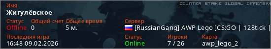 Играет на Counter Strike Global Offensive сервере. Страна: РоссияПервый раз замечен 16:35 09.02.2026