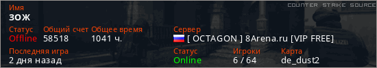 Играет на Counter Strike Source сервере. Страна: РоссияПервый раз замечен 12:44 06.06.2022