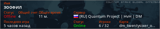 Играет на Counter Strike Global Offensive сервере. Страна: РоссияПервый раз замечен 19:55 22.03.2026