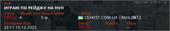 Играет на Counter Strike 1.6 сервере. Страна: УкраинаПервый раз замечен 23:08 15.12.2025