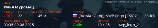 Играет на Counter Strike Global Offensive сервере. Страна: РоссияПервый раз замечен 06:10 29.07.2025