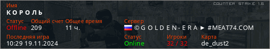 Играет на Counter Strike 1.6 сервере. Страна: РоссияПервый раз замечен 10:56 11.07.2023