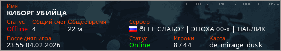 Играет на Counter Strike Global Offensive сервере. Страна: РоссияПервый раз замечен 23:46 23.10.2025