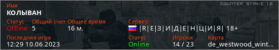 Играет на Counter Strike 1.6 сервере. Страна: РоссияПервый раз замечен 13:18 08.12.2019