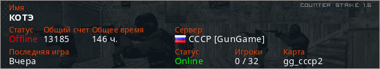 Играет на Counter Strike 1.6 сервере. Страна: РоссияПервый раз замечен 18:52 09.08.2024