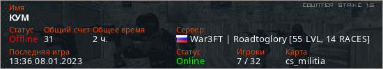 Играет на Counter Strike 1.6 сервере. Страна: РоссияПервый раз замечен 20:35 30.12.2020