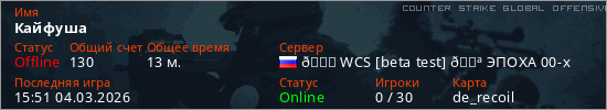 Играет на Counter Strike Global Offensive сервере. Страна: РоссияПервый раз замечен 11:03 27.02.2026