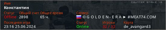 Играет на Counter Strike 1.6 сервере. Страна: РоссияПервый раз замечен 14:55 14.01.2023
