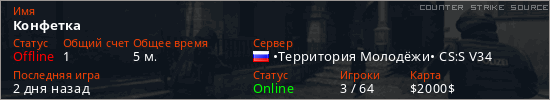 Последний раз был в сети Вчера Игрок с таким ником замечен на 3 серверах