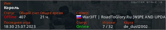 Играет на Counter Strike 1.6 сервере. Страна: РоссияПервый раз замечен 11:45 17.05.2021