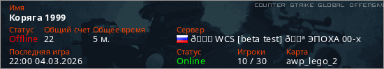 Играет на Counter Strike Global Offensive сервере. Страна: РоссияПервый раз замечен 21:58 04.03.2026