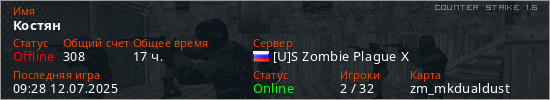 Последний раз был в сети 09:28 12.07.2025 Игрок с таким ником замечен на 15 серверах