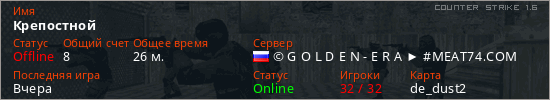 Последний раз был в сети Вчера Игрок с таким ником замечен на 8 серверах