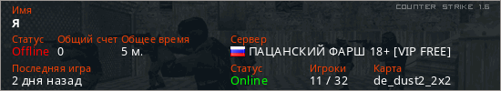 Последний раз был в сети Вчера Игрок с таким ником замечен на 45 серверах