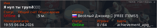 сервере. Страна: Россия