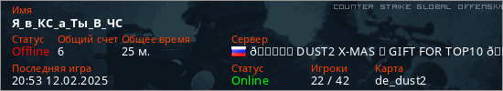 Последний раз был в сети 20:53 12.02.2025 Игрок с таким ником замечен на 6 серверах